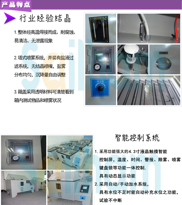 摒棄玻璃鋼材質(zhì)應 時間而產(chǎn) 生表面退色纖維化.全塑結(jié)構(gòu)鹽霧試驗箱更能滿足長期強酸、強鹽霧試驗爾不產(chǎn)生任何損傷。